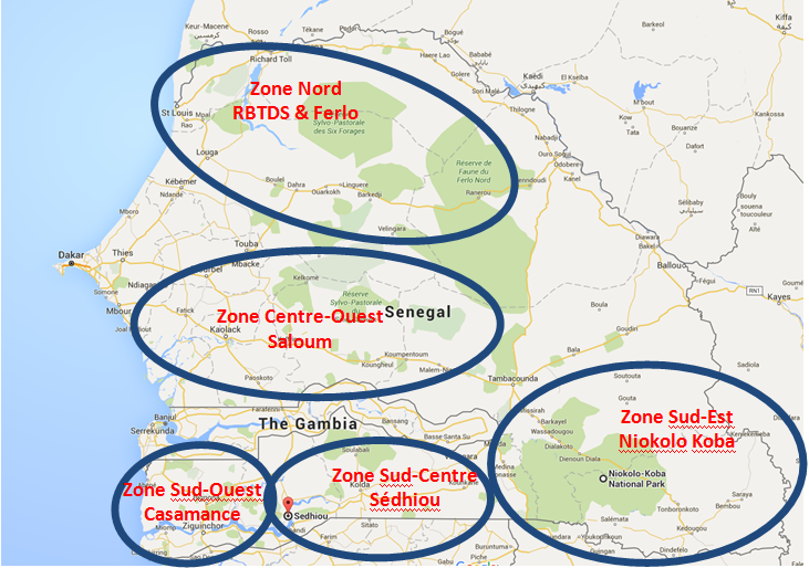 Les 5 Zones d’intervention de KaBeKa dans le cadre de l’initiative.
